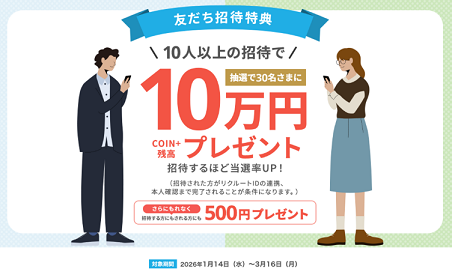 2026年3月16日までの期間中、招待コードを入力して新規登録すると500円もらえます!