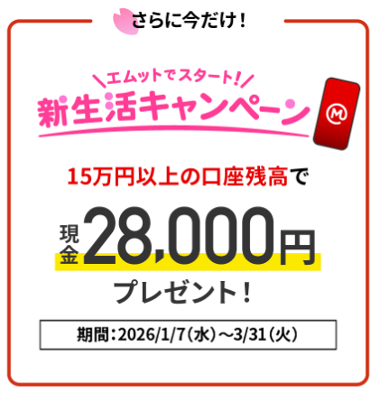 ⑤口座残高15万円以上でさらに28,000円!