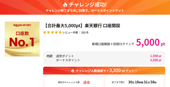 - 2026年4月30日までに5,000pt以上獲得で最大2,000円