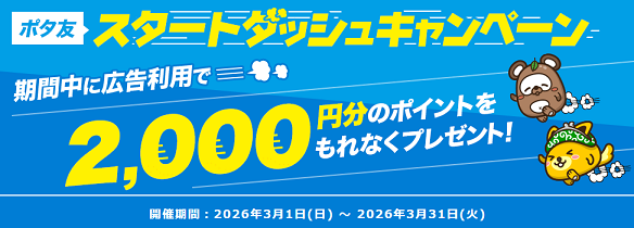 - 期間中に広告利用で最大2,000円相当